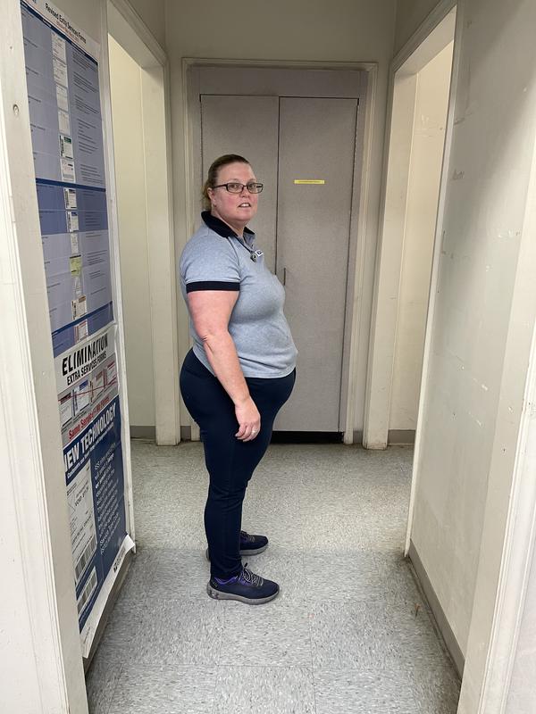 The 1st picture is a week before surgery, the 2nd picture is the day I went back to work, 9 days later.
